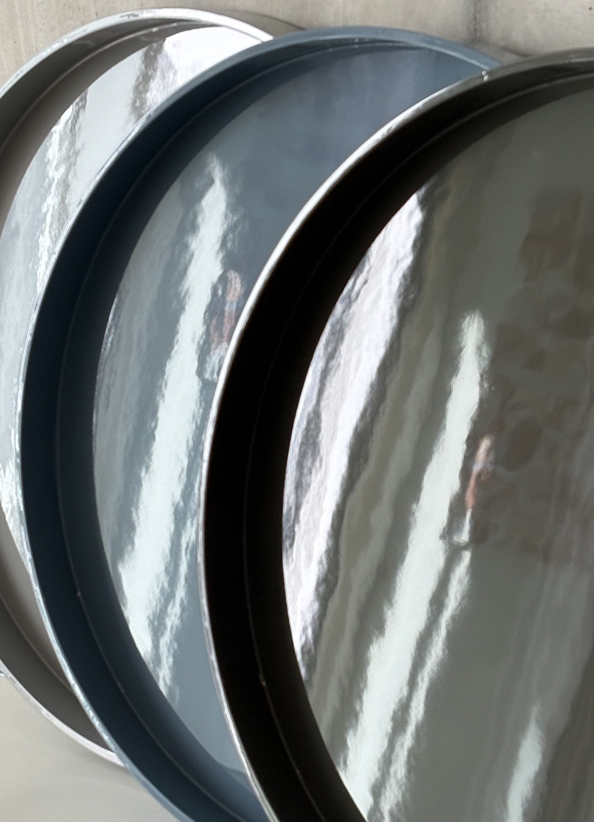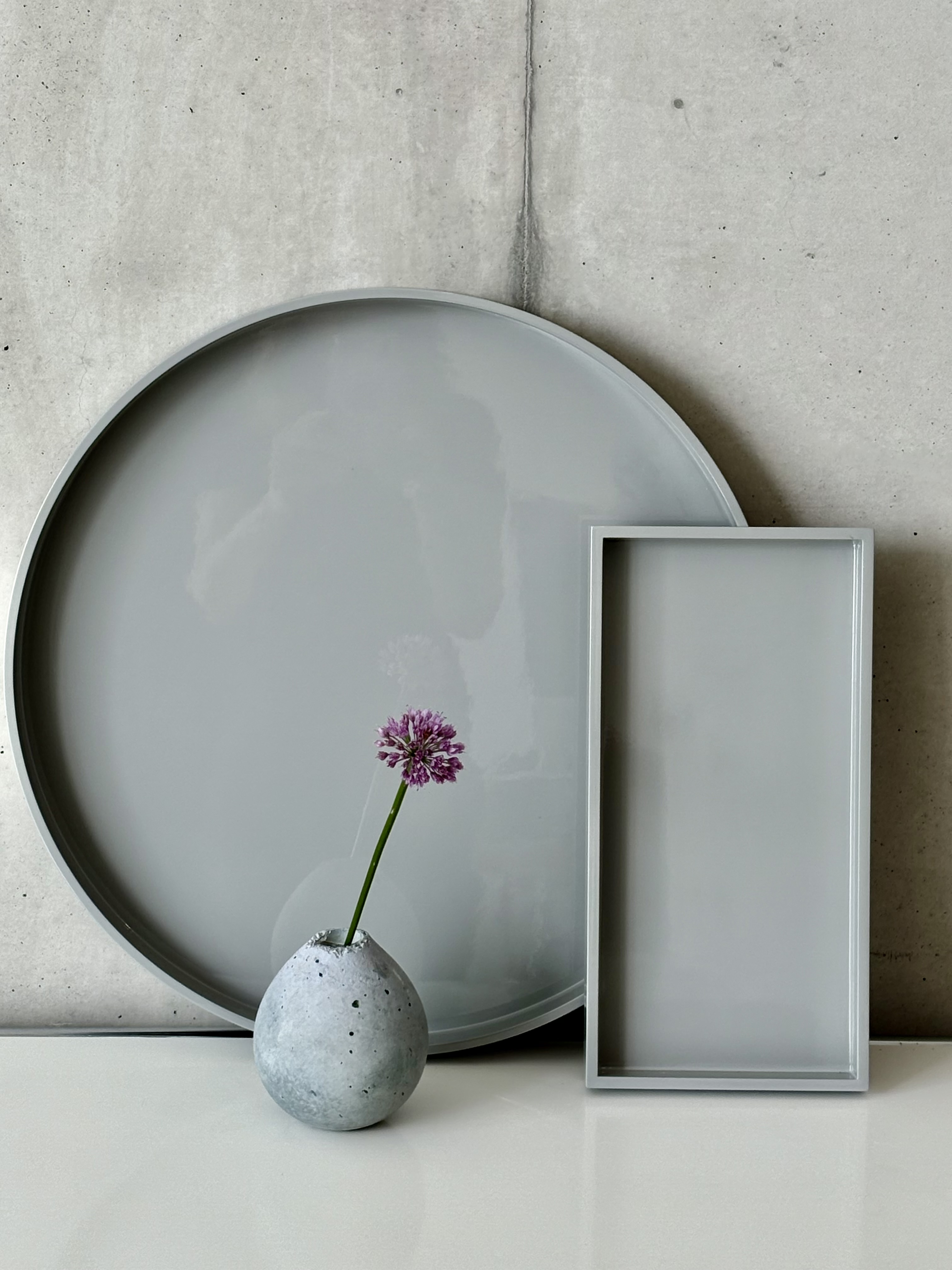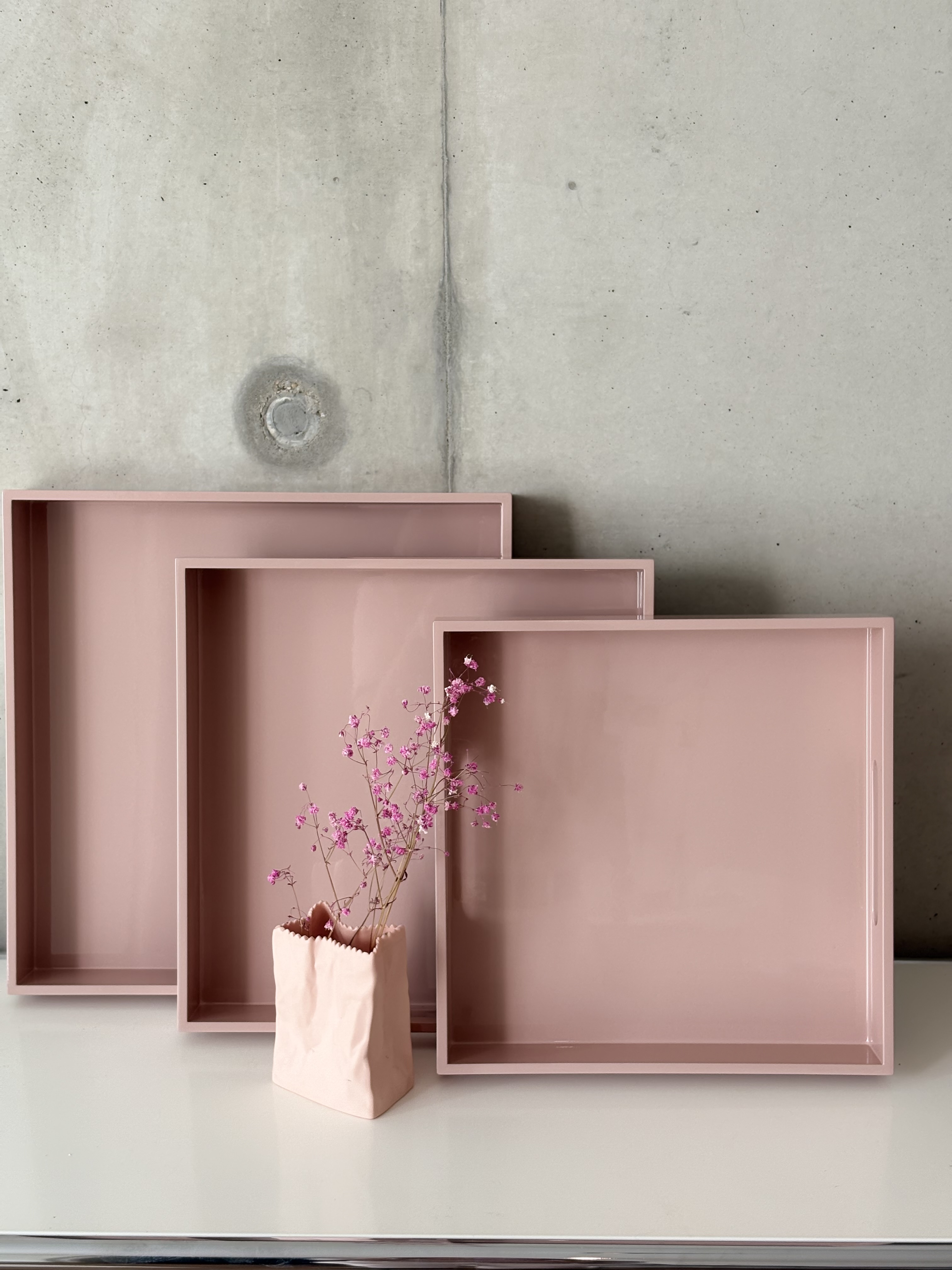 Lacquer 3er Set quadratisch Tabletts grüngrau